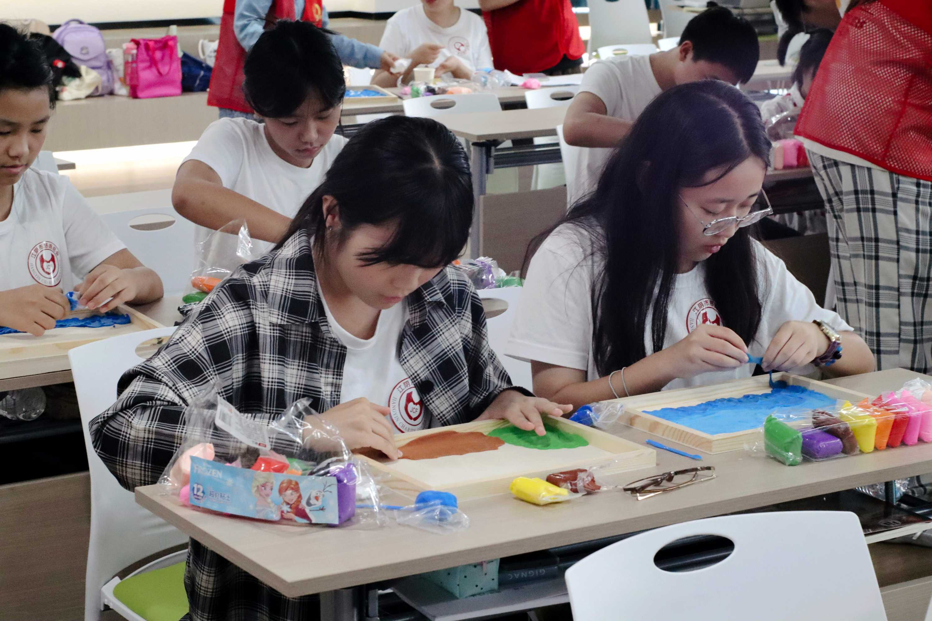 圖為江陰市澄江便民服務中心黏土畫活動現場,孩子們創作自己的專屬作品。陸佳怡 供圖