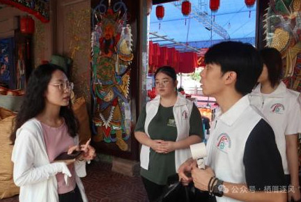 莊嚴(yán)肅穆的吳氏家廟,作為始建于明代的潮式建筑典范,其“鑊耳墻”凌空翹角,“龍船脊”蜿蜒舒展,獨(dú)特形制中承載著厚重的宗族歷史。實(shí)踐團(tuán)成員駐足于族規(guī)碑刻前,凝視著科舉功名匾額,聆聽社區(qū)干部娓娓道來家族遷徙的傳奇故事與先賢的德業(yè)榮光。在斑駁石碑與泛黃族譜的無聲訴說中,大家深切體會(huì)到“敬天法祖、崇文尚學(xué)”的精神內(nèi)核,更感受到宗族文化作為“精神圖騰”,對(duì)凝聚社區(qū)認(rèn)同所發(fā)揮的強(qiáng)大作用。