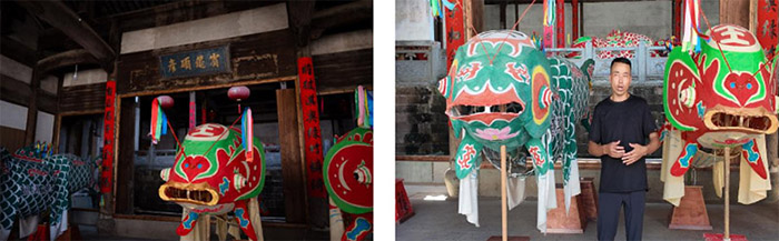 圖1:團隊在敦睦堂。王常舜供圖 圖2:鄭冬蛟在敦睦堂介紹魚燈。潘晨浩供圖