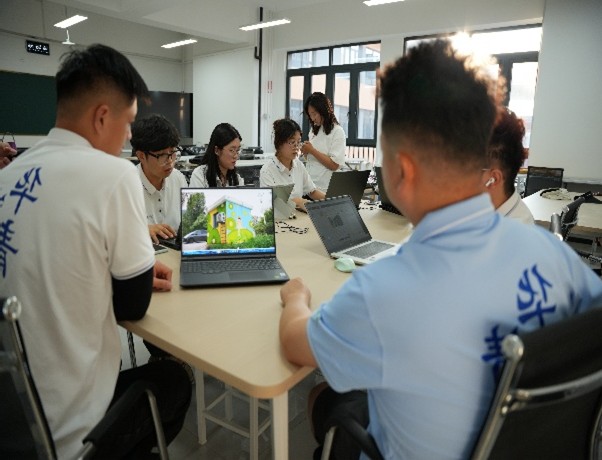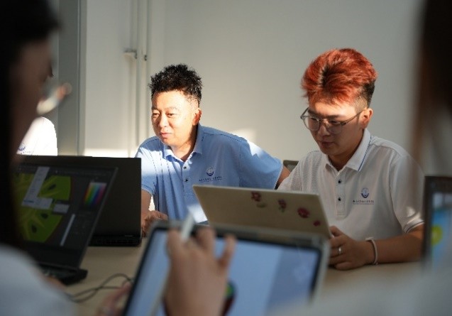 王華梓老師則從藝術表現手法上提出具體指導:“色彩要貼近自然,用嫩綠表現新葉、深褐勾勒果毛,再以暖黃點綴陽光,讓整體畫面充滿生機。同時,線條需兼具靈動與質樸,避免過度裝飾,才能與鄉村墻面的肌理相協調。”針對學生團隊初步提交的三版設計草圖,兩位老師逐一點評,重點討論了畫面構圖的主次關系、元素比例的合理性,以及如何通過墻繪傳遞“鄉村振興”的積極理念。
