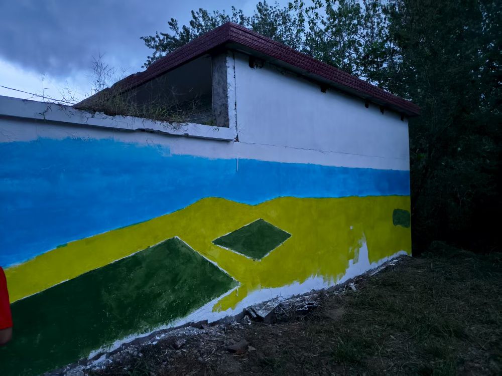 首日工作結束時,右側墻體的主體圖案已初步顯現。團隊復盤當天工作,優化流程,并針對第二天任務進行再分工,力求高效優質完成全部繪制內容。實踐團將繼續推進剩余墻面的繪制與修飾工作,加強對已完成區域的維護與細節完善,確保整體風格統一、視覺效果持久,為長山村鄉村振興與文化提升貢獻青春力量。