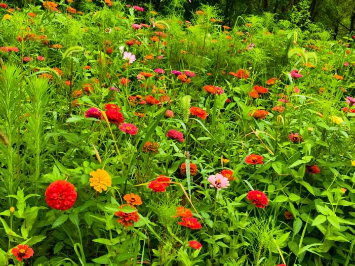 這片花田像打翻了的調色盤,紅的、黃的、粉的花兒肆意綻放,和翠綠的枝葉交織在一起,把生機與美好全鋪在眼前啦~