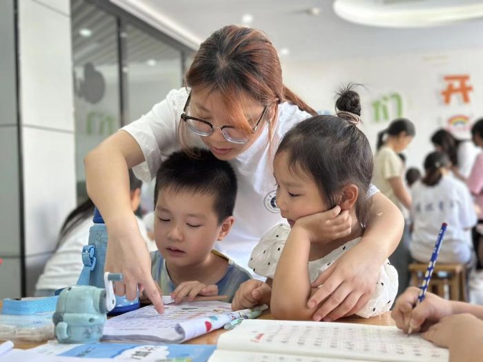 圖為團隊成員認真輔導小朋友學業。呂怡瀟 供圖