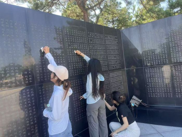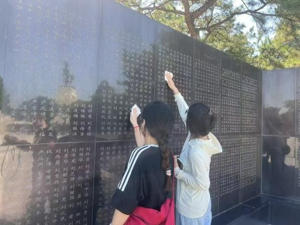 在英烈館“英名墻”前,團隊成員自發拿起抹布,輕輕擦拭鐫刻著“劉”姓烈士姓名的墻面。劉杉杉同學輕聲念出一個個陌生卻莊嚴的名字,感慨地說:“他們可能是我的同鄉、同族,甚至可能是我的祖輩。”這一刻,歷史不再是課本上的文字,而是血脈相連的記憶,是激勵我們前行的精神火種。