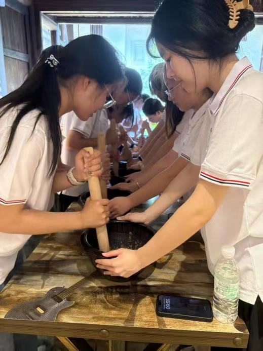 圖為實踐團隊體驗贛南擂茶制作技藝