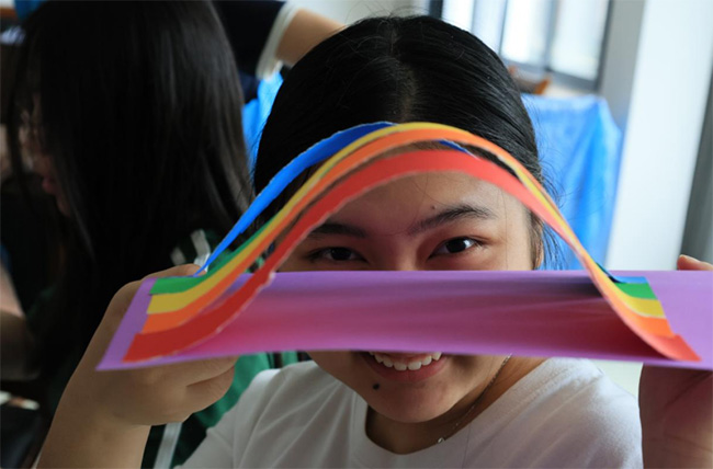 圖4:實踐團成員展示手工制作的“彩虹橋”