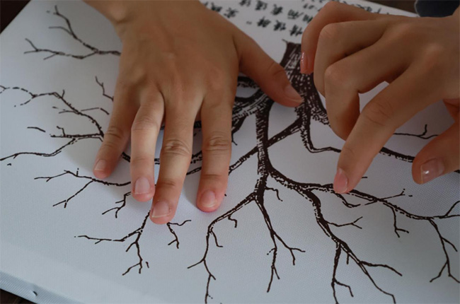 在活動的尾聲部分,實踐團成員與小朋友們共同完成了手印畫創作。在溫馨融洽的氛圍中,大家一同用手蘸取顏料,將五彩的手印層層疊印在畫布之上,共同構成一棵枝繁葉茂、生機盎然的參天大樹。每一個彩色手印代表一個夢想的印記,也象征孩子們如枝葉般茁壯成長、向上延伸的未來。