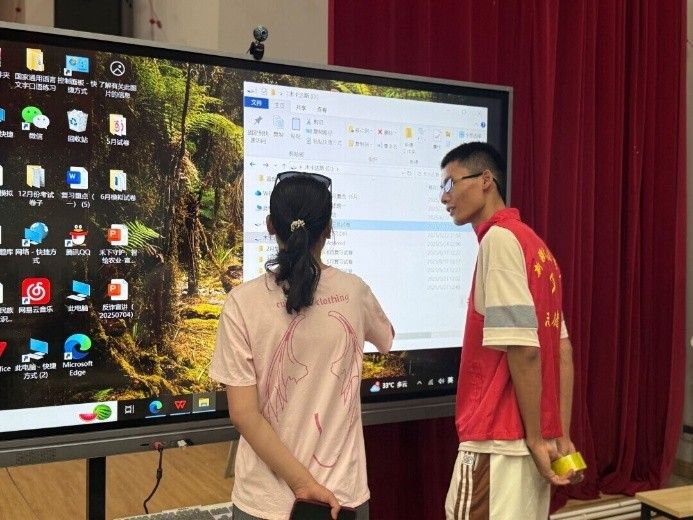 此圖為實踐團隊員向居民播放反詐宣傳視頻。曹渭荻供圖