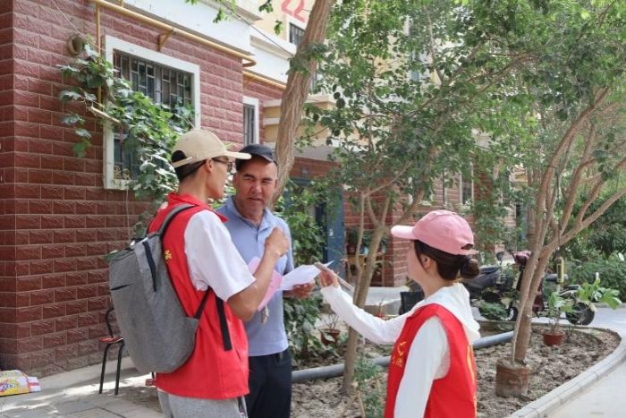 圖為實踐隊員在向居民進行答疑解惑。曹渭荻供圖
